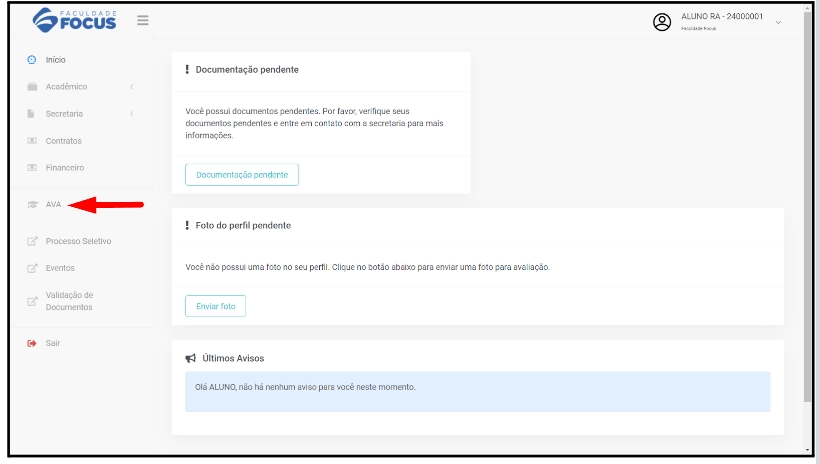 2. Para acessar o AVA, o aluno deverá clicar nesse link: